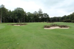 Fairwaybunkrene på dette par 5 hullet på Woking GC påvirker plasseringen av andreslaget for å få riktig innspillsretning til greenen.