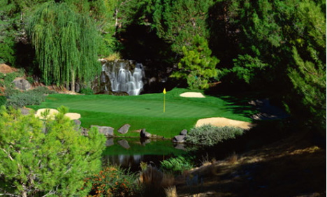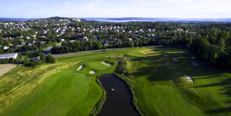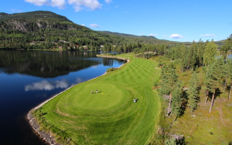 Hull nr 9 er et spennende par 3 hull med vann foran greenen.