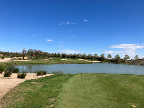 Anlegget er designet av Greg Norman. Det betyr ifølge vår guide og medspiller Marcello Della Vecchia (salgs- og markedsdirektør og god golfspiller) mange bunkere. Vi spilte de første 9 hullene på rosa sløyfe sammen med ham og opplevde en bane i utmerket stand på alle plan. Den ligger i et vakkert naturområde, uten noen form for bebyggelse i nærheten. Vi kunne spille helt uforstyrret; bare fuglesang og ikke en gang en lyd i form av «fore». Mye av banen ligger i åpent, oversiktlig terreng med noen store trær, i andre deler er det mere skog på siden av fairwayene.