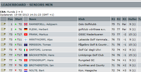 Denne resultatlisten etter 9 hull så jeg aldri og visste ikke under veis hvordan jeg lå an: