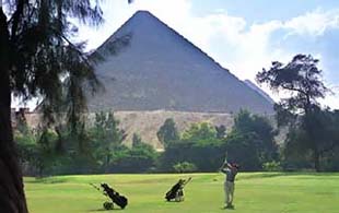 guest can also enjoy golfing in the evening with the Pyramids in the background."