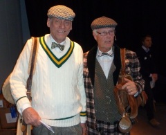 Jens N. Engelstad og Arne Ramstad var meget velkledde for anledningen da de gikk gjennom deler av den norske golfhistorien