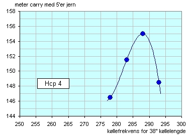• Eksempel 1:  En kølle med L-merket skaft kan ha en egenfrekvens i intervallet 273 - 308 cpm, hvilket er en variasjon på ca 3,5 flexgrader!
