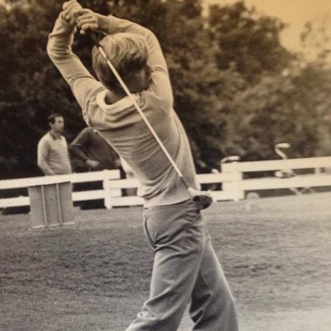 lukkede øyne under hele treningssvingen. (Arkivfoto fra ca. 1978 - norsk