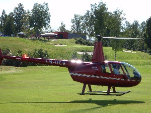 De leide inn et helikopter som fløy lavt over fairwayene for å sette fart på tørkingen i solskinnet. Helikopteret fløy i lav høyde - omtrent en meter - for å få fart på opptørkingen. Det ble ikke helt tørketrommel, men ikke langt unna.