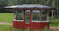 Startboden ved første tee var gul da den sto på Bogstad i mange år. Nå skal nye og gamle medlemmer på Holtmark ha glede av den fremover