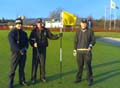 14 lille julaften. Det viser 3 fornøyde medlemmer av Larvik Golfklubb; f.v.