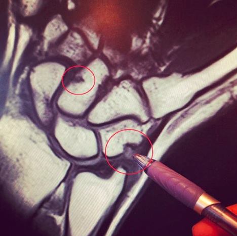 It turns out I have bone-bruising in two of the bones in my right wrist; this is
