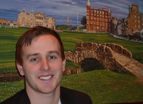 Marius Thorp foran et bilde fra St. Andrews på ToppGolf Senteret. Det hadde