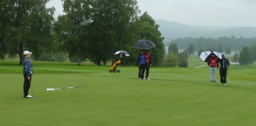 Det var vått på Bogstad i dag. Her er lederballen på det 18. hullet lørdag