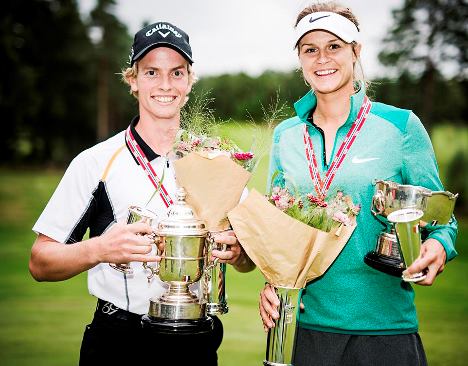 Tonje Daffinrud fra Vestfold Golfklubb og Ole B. Ramsnes fra Stavanger GK er