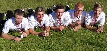 Losby klarte å vinne lag NM. Her med gullmedaljene. Laget bestå av Daniel Bøe Jacobsen,  Truls Andre Kristoffersen, Lars Michelsen, Boris Alexander Christov og Atle Ruden. Foto: Asbjørn Ramnefjell