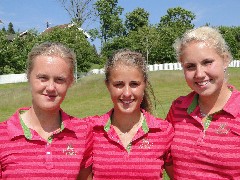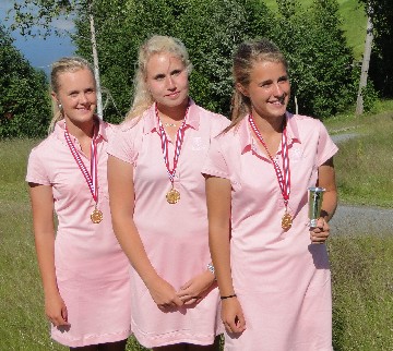 Oslo GK ledet jenteklassen før siste runde i Lag NM på Haga f.v. Elisabeth Haavardsholm, Stina Resen og Nicoline Engstrøm Skaug. Foto: Asbjørn Ramnefjell