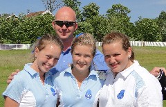 Fint vær, fin stemning på Haga tirsdag. Her er Stavangerlaget med kaptein Henning Lindanger og f.v. Marthe Vold, Katerine Jæger og Julie Aas Nordin