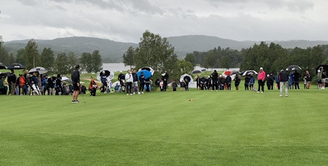 NextUp ble en suksess i regnværet - her på hull 17 som ble delt med birdier
