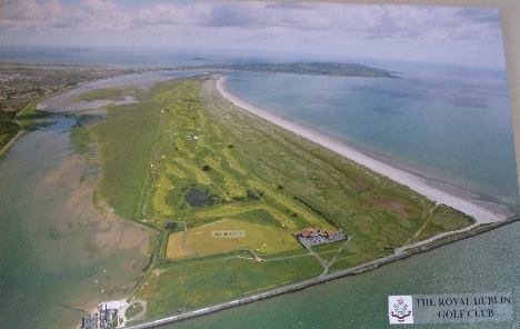 Vi skal huske på at klubben er fra 1875 og er den nest eldste i Irland. Den ligger på en øy rett utenfor Dublin. En øy som vokser seg større og større fordi det skylles inn sand inn på strendene der hvor den rådende vinden kommer inn. For hundre år siden var det en halv sand wedge til stranden. I dag er det to gode driver!