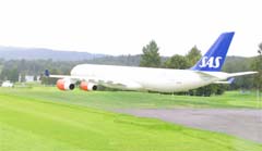 SAS blir tittelsponsor for SAS Masters på ET. Her et SAS-fly under innflygning lavt over 10. tee på Bogstad Golfbane under SAS Masters på LET i fjor.