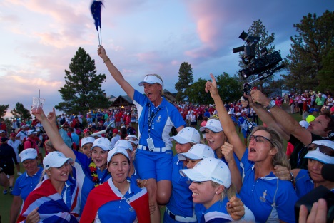 Europeerne feiret vilt etterpå. Naturlig nok. Suzann Pettersen holdt på ingen