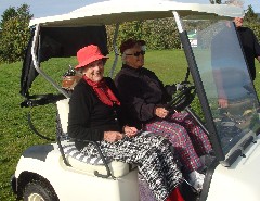 ”suste” de to madres familias som kjørte bil sammen til greenen, og var