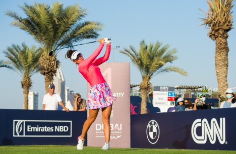 siste dameballen søndag. Hun har -4 og er således tre slag bak Minjee LEE.