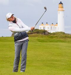 det på de lange slagene og hun får flyt på greenene med den balansert putteren