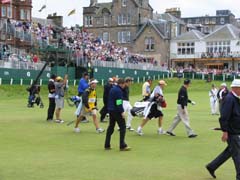 Luke Donald (hvit bukse) under Jack Nicklaus siste Open i 2005. Oppe til